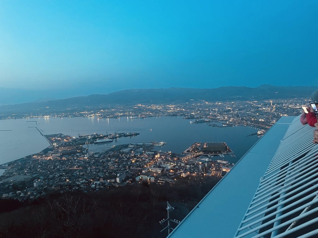 夕暮れから夜にかけて景色を見るのがきれいと聞き、午後5時ころにホテルからロープウェイの駅に向かいました。ロープウェイの駅までの景色もとてもきれいです。箱館山からの夜景は本当にきれいでした。