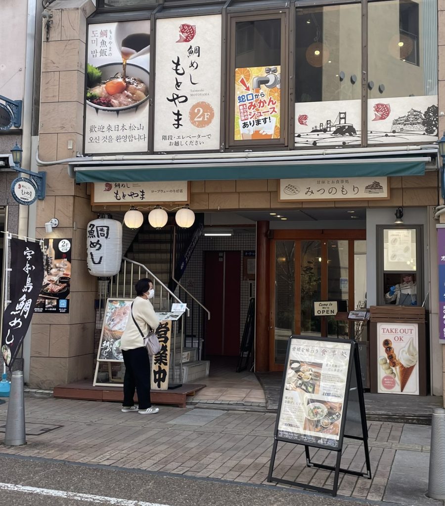 松山城へのロープウェイ乗り場への道沿いや道後温泉のハイカラ通りには沢山の鯛めし屋さんがありました。