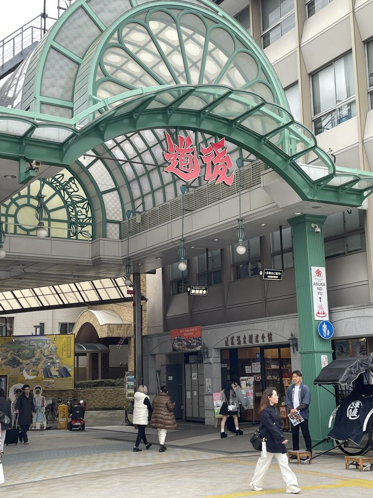 道後ハイカラ通り(道後商店街)は、愛媛県松山市の道後温泉本館に隣接する商店街で、「道後ハイカラ通り」の愛称で親しまれています。この通りには、みやげ物店や飲食店が軒を連ねており、観光客にとって魅力的なスポットです。多くの店舗は朝9時から夜の10時まで営業しており、温泉街らしい浴衣姿でのそぞろ歩きが楽しめます。