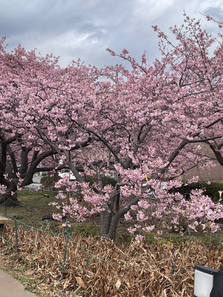 河津桜の最大の特徴は、一般的なソメイヨシノよりも開花が早く、例年2月上旬から1カ月近くにわたって咲き続ける息の長い花期にあります。また、花びらが大きく、濃いピンク色をしているため、非常に見応えがあります。